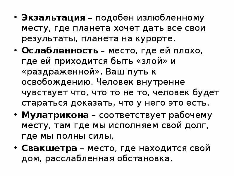 Причины экзальтации и ослабления планет не объясняются ни в одном авторитетном астрологическом труде.