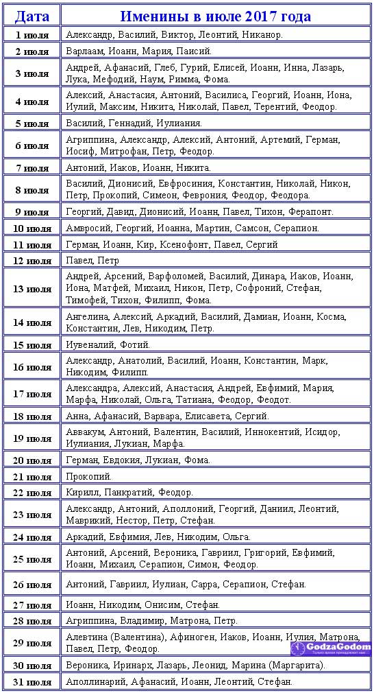 Именины по именам