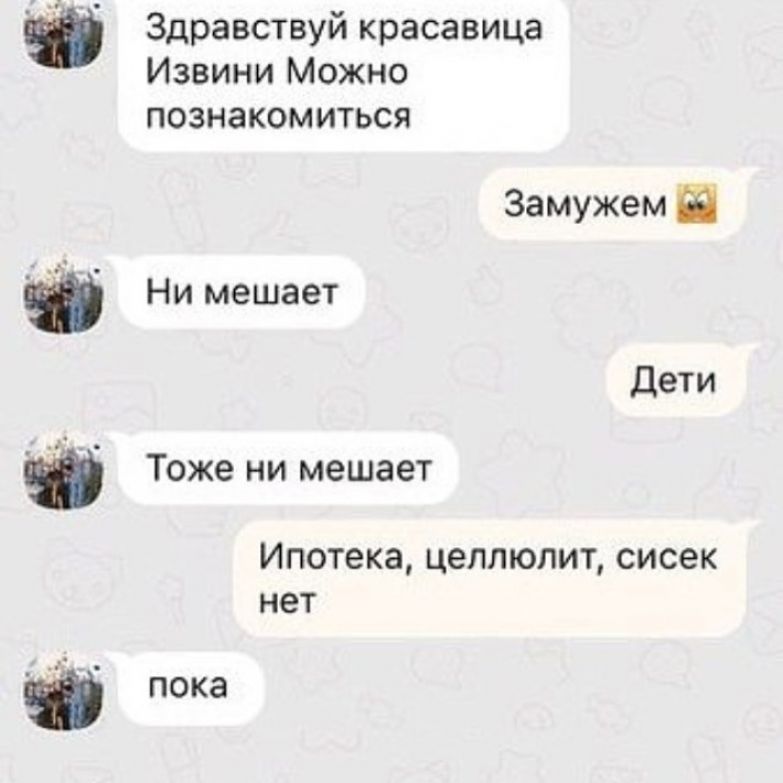 - «Вашей маме зять не нужен?» — возглавляет топ самых часто используемых предложений знакомства. От такого сообщения девушка, скорее всего, заблокирует диалог, опасаясь того, каким может быть продолжение.