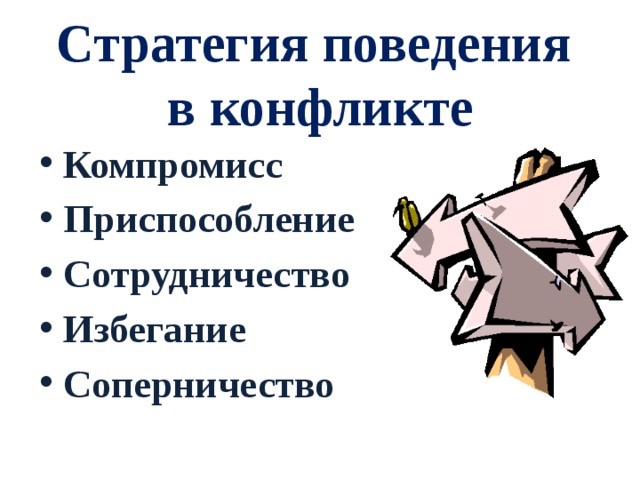 - Виды стратегий поведения в конфликте