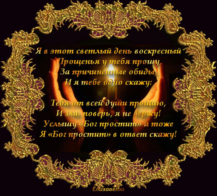Поэтому, зная, что встреча могла оказаться для кого-то последней, иноки перед разлукой просили прощения друг у друга.Со временем обычай распространился на все храмы. А сейчас эту традицию чтут порой даже далекие от Церкви люди.Традиции и обрядыПрощеное воскресенье — особый день для верующих. Днем, после литургии, священники меняют облачения с белых на траурные черные. Меняются покрывала в алтаре на престоле и жертвеннике, а также алтарная завеса. Вечерняя служба совершается при выключенном свете.После нее совершается специальный чин. Верующие подходят сначала к священнику. Потом друг к другу со словами: «Прости меня!» Ответ такой: «Бог простит, и меня прости!»Точно так же можно примиряться не только во время службы в храме. В течение всего дня верующие просят прощения у близких и знакомых, которых могли словом или делом обидеть. Священники советуют делать это устно, дабы просьба была максимально искренней.Помимо церковных, есть еще народные обычаи. Прощеное воскресенье — последний день Масленицы.