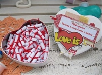 - Блок жуйок «Love is». Це недорогий, і при цьому милий і небанальний презент, який оцінить будь-яка дівчина.