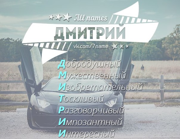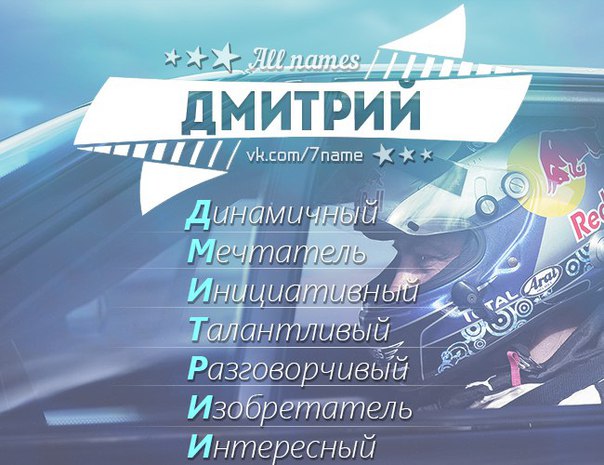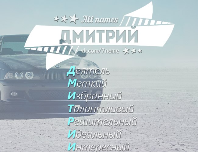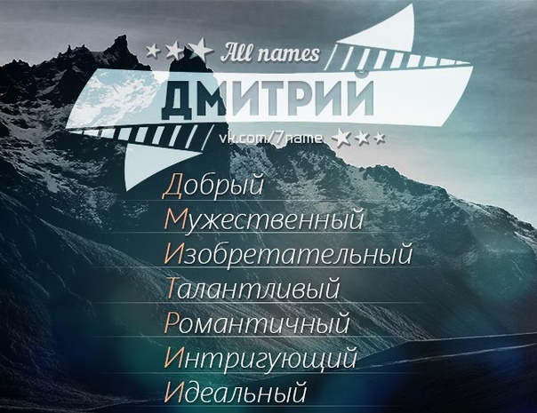 Тайна имени ДмитрийСклонность к риску, иногда неоправданному, еще одна из черт, мешающих Димам в жизни. «Пан или пропал» — его жизненное кредо. Как правило, им везёт, но если случаются неудачи, то всегда серьёзные, сродни краху вселенной. Дмитриям судьба много всего отсыпала в ладошки, и они знают, как эти дары применять. Коммуникабельность позволяет обрастать полезными связями в любых сферах, чувство юмора помогает завоевать любовь окружающих, а приятная внешность вкупе со всеми качествами, сражает женщин просто наповал.