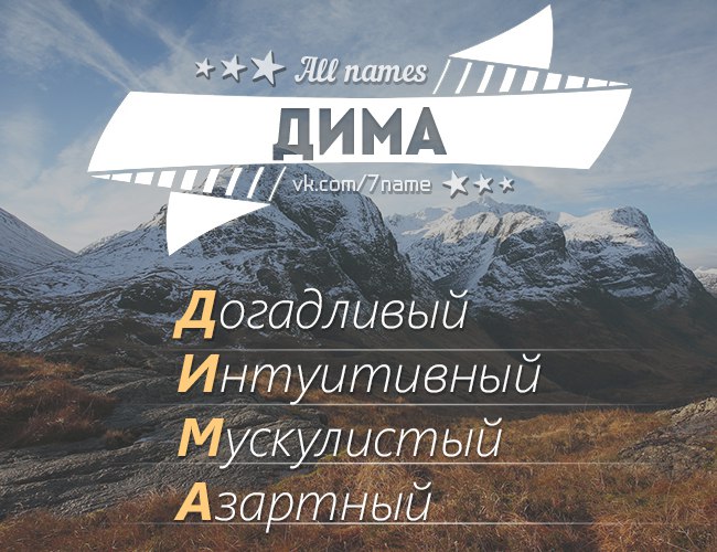 Дима — это имя носят мальчики с очень слабым здоровьем. В детстве они часто болеют, не переносят высокой температуры. очень похож на свою маму. Любит говорить на разные абстрактные темы, а также обожает спорить. Не то чтобы ему это особо было нужно, но если ему придется отстаивать свое мнение, он не будет никого слушать, даже если оно ошибочное. Дима очень бескомпромиссен, постоянно настаивает на своем.Однако общаться с этим человеком не только сложно, но и интересно. Друзья скоро привыкают к его качествам — упрямству и бескомпромиссности, и только посмеиваются.