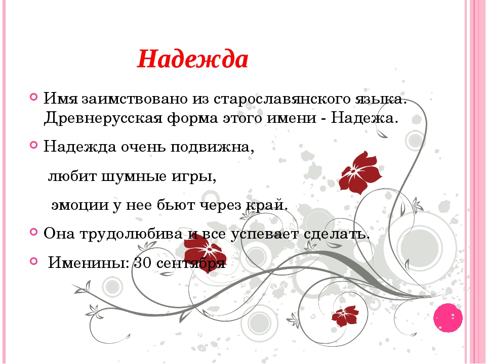 Значение имени Надежда — характер и судьба, тайны происхождения